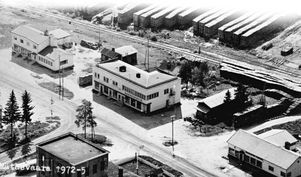 keskustaa, voimalaitoksen katto vasemmalla alla ja kaupat