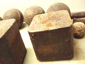 Kuvassa kuulamyllyn järeitä kuulia ja vielä uusia pyöristymättömiä